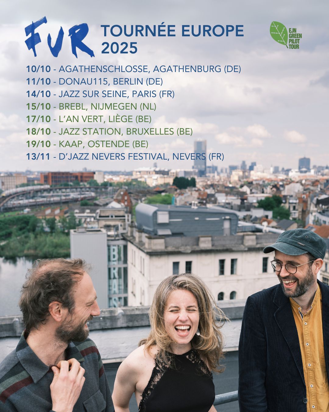 The Green Pilot Tour by FUR unfolded as a compact cross-border journey between the Netherlands and Belgium, bringing the trio’s chamber-jazz sound to four closely connected cities. The tour was coordinated by Kunstencentrum KAAP, working together with EJN member Music Meeting, and produced by Tricollectif (Orléans, FR). FUR is a trio featuring clarinetist and composer Hélène Duret, guitarist Benjamin Sauzereau and drummer Maxime Rouayroux.