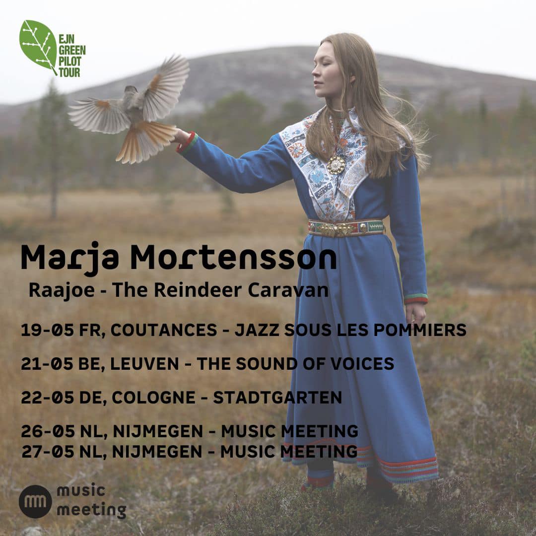 The tour of Norwegian joik singer Marja Mortensson and tuba player Daniel Herskedal was organised by Marja's agent in Europe, Tinka Steinhoff. She helped with collecting partners and with filling some of the partners' sides of the application. Otherwise the work was done by us, the leaders, that is Music Meeting Festival. The tour consisted of 4 cities in 4 countries: Coutances (France), Leuven (Belgium), Cologne (Germany) and Nijmegen (the Netherlands) and was accompanied by Marja Mortensson's baby. Therefore the mean of transport was chosen accordingly to accommodate the touring duo, their sound technician and the baby-sitter who could take care of the baby during concerts, recording session and sound checks/rehearsals. We were lucky not to have weather disturbances or logistics problems on the tour, so all concerts took place as planned with en extra addition that was the recording session by the Dutch tv VPRO. The concert recording emission is planned for July 2023 and we will be happy to share it with all the members once it is out.
