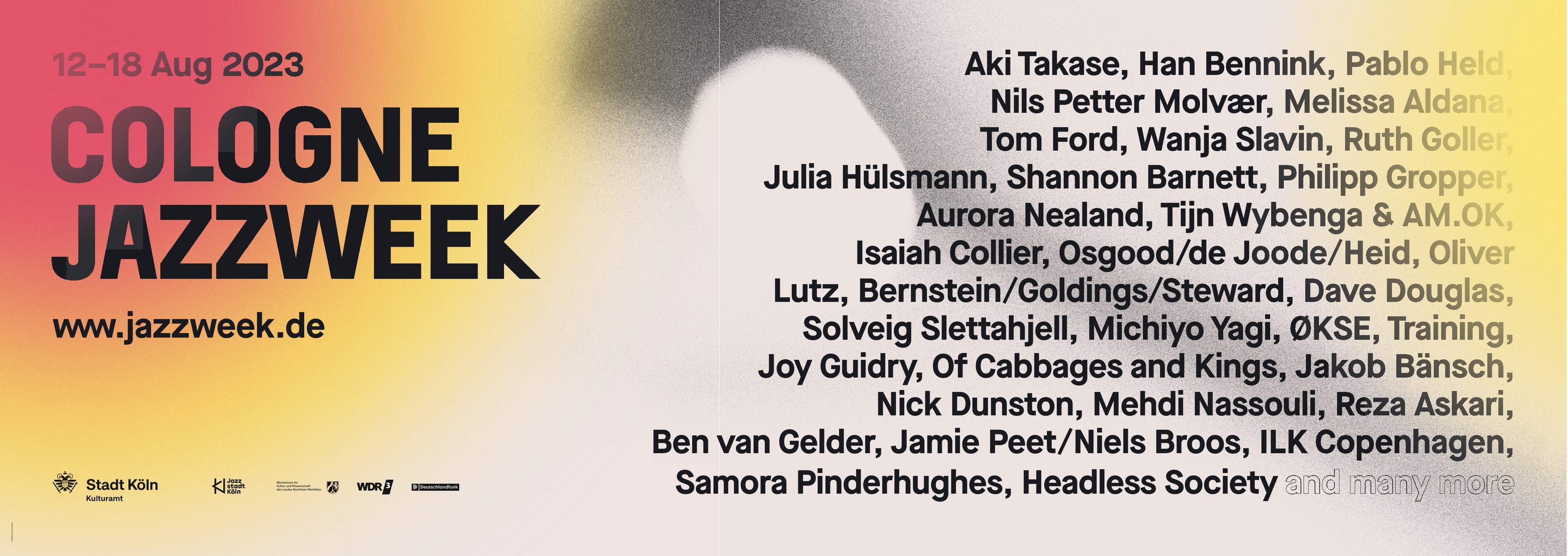 The sponsor of Jazzstadt UG is the political interest group of the Cologne jazz scene, the Cologne Jazz Conference. Sponsors are the city of Cologne and the state of North Rhine-Westphalia. We recently have been awarded with the German Jazz Price as Festival of the Year 2023.