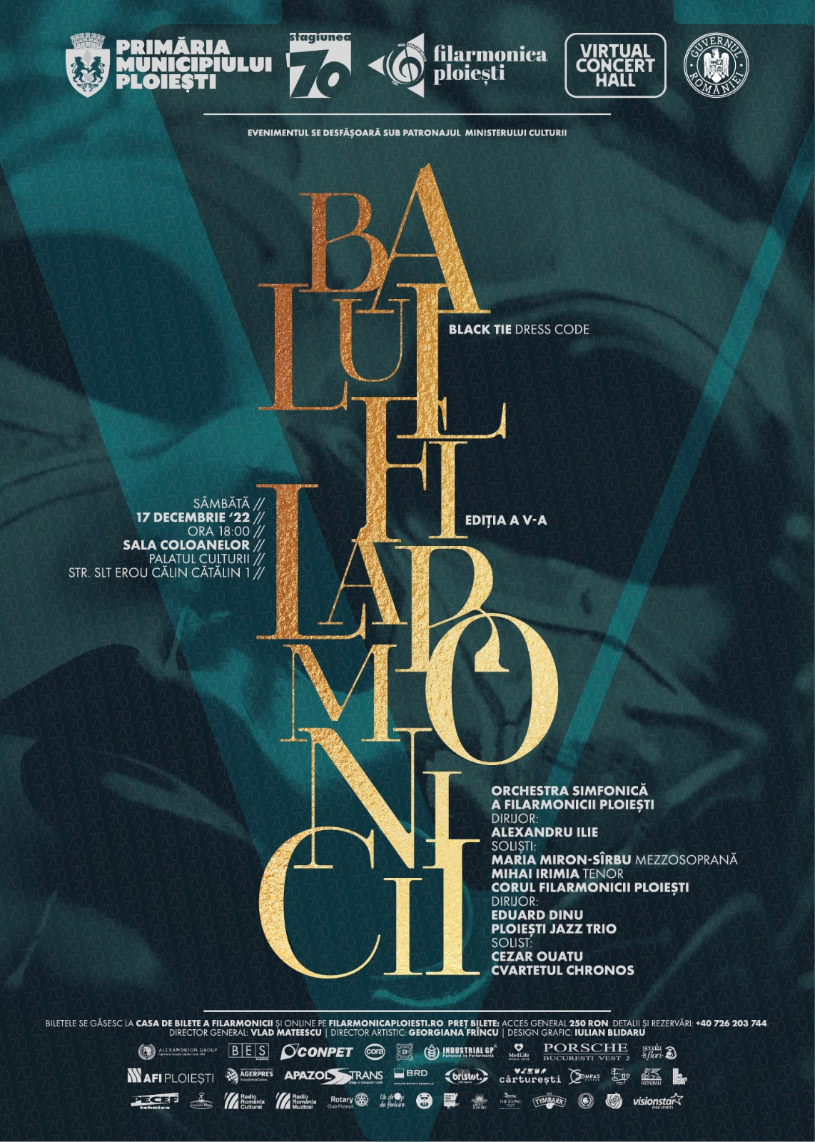 Our Philharmonic is one of the best in our country and the only one in Romania to organize an International Jazz Festival. We also have our own online platform: Virtual Concert Hall, for live transmissions of our concerts and events. We organize Ploiești Jazz Festival who will reach, this year, the XVIIth Edition, and we had the honour to have renowned artists to perform during the years: Ravi Coltrane, Jazzmeia Horn, Carmen Souza, Benito Gonzales, Ralph Peterson. Our manager is a musician orchestra conductor and we also have a n artistic director she plays the viola. We have all the compartments of a national institution and artistically, we have: Symphonic Orchestra, Jazz Trio, Folk Orchestra soloists and dancers, Choir classical quartet and small ch amber music formations. We also organize symphonic concerts, folkloric concerts and jazz concerts, during our Season; this year we have a n anniversary season: celebrating 70 years of activity of the Philharmonic