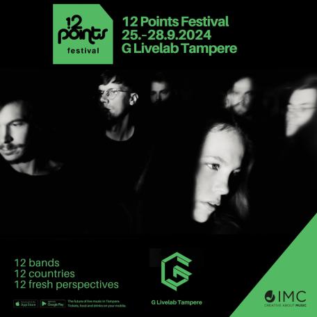 G Livelab’s director Annamaija Saarela said: "G Livelab Tampere is happy and proud to be a partner of the 12 Points festival in 2024. During its existence, 12 Points has served dozens of young talents as a significant springboard for an international career. We are also happy to present our excellent club to international guests."