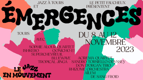 Organized in Tours for more than 20 years by the musica school Jazz à Tours and the jazz club le Petit faucheux, Émergences is the festival which reveals emerging talents on the jazz scene. More than just a festival, Émergences celebrates diversity, creativity and audacity, essential values carried by the festival... and by the new generation of artists, talented musicians who will perform in various places in Tours during 5 days. From 8th to 12nd november, Emergences present Sophie Alour Quartet, Ishkero, Qonicho E!, SuperChevReuil, Bluewave and many others.