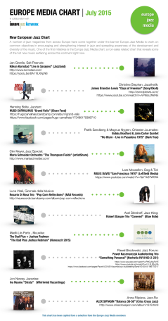 A number of jazz magazines from across Europe have come together under the banner Europe Jazz Media to work on common objectives in encouraging and strengthening interest in jazz and spreading awareness of the development and diversity of the music. One of the first initiatives is the Europe Jazz Media chart: a non-sales related chart that reveals some of the hot new music surfacing across the continent right now.