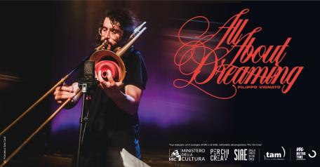 'All About Dreaming' is a solo trombone performance conceived by Italian trombonist and improviser Filippo Vignato. The performance is designed to adapt to and interact with the acoustic dimensions of the spaces that host it: an essential and minimalist dialogue with the echoes, reverberations, and resonances of the venue, in which both performer and audience immerse themselves during the concert. By reinterpreting the connection between performing art and concert form, 'All About Dreaming' offers a total experience for both musician and audience, enveloped by the same sound and space in a timeless, dreamlike dimension.