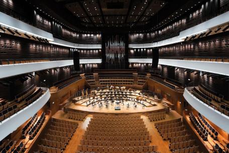 The state-of-the-art acoustics of the concert halls have been designed by Arup (selected as Artec Consultants Inc) from New York, who were also the theatre planning and audiovisual systems designers for the project. Arup (and Artec) are known for highly acclaimed concert halls around the world including the Culture and Congress Centre in Lucerne, Esplanade-Theatres on the Bay in Singapore, Harpa in Reykjavik, and La Maison Symphonique in Montreal, and Bartok Bela National Philharmonic Hall in Budapest.