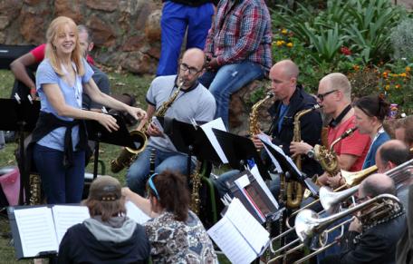 Photo: Maria Schneider and Ensemble Denada rehearsing in the garden at the Standard Bank Jazz festival, South Africa 2014 (by Alan Webster)