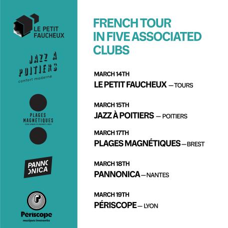 Le Petit Faucheux (Tours), Le Périscope (Lyon), Plages Magnétiques (Brest), Jazz à Poitiers (Poitiers) and Pannonica (Nantes) organize together the tour of The Rempis Percussion Quartet (with Dave Rempis, Ingebrigt Haker Flaten, Tim Daisy and Frank Rosaly)
