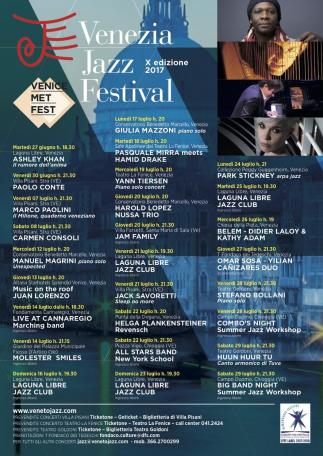 Venezia jazz festival reaches its 10th edition in 2017 with a rich programme of events throughout the month of July in the city of Venice and in its surroundings with the Venice Metropolitan Fest.
