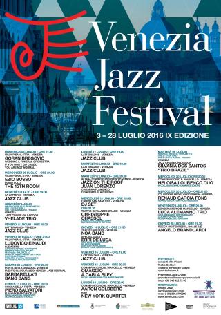 Venice Jazz Festival is organized by Veneto Jazz together with the Ministry for Cultural Endowments and Activities, Veneto Region, City of Venice Cultural Committee, Veneto Museum Hub, and the National Museum of Villa Pisani. Partners: Palazzo Grassi – Punta della Dogana, Peggy Guggenheim Collection, Splendid Venice Hotel, Venezia News, Trenitalia, Save, Alilaguna, Marco Polo. Technical partners: Azienda Agricola Conte Collalto, Hollywood Service, D-Music, CVL Drums.
