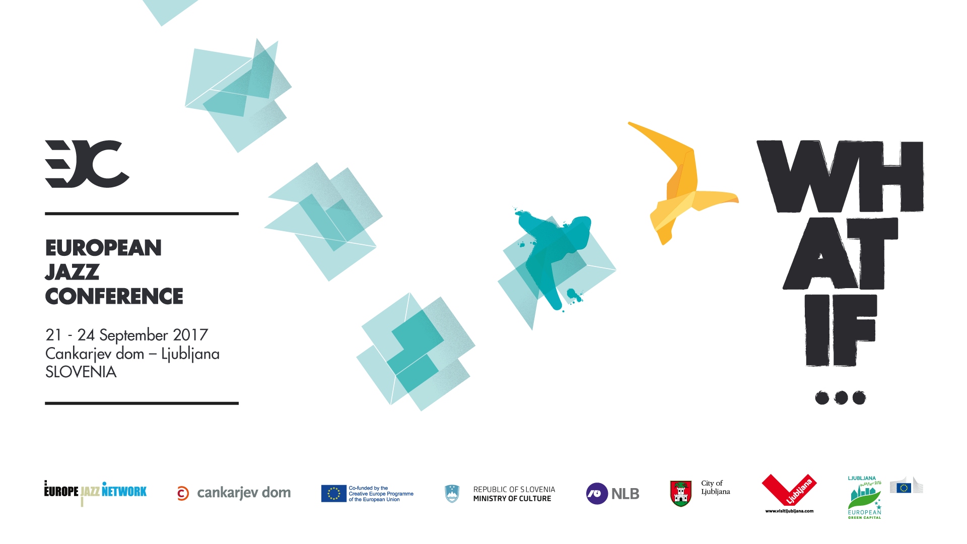 The European Jazz Conference 2017 was co-organised by Europe Jazz Network (EJN), the main association of jazz festivals and venues in Europe, and Cankarjev dom (CD), organiser of the Ljubljana Jazz Festival, and was supported by the Ministry of Culture of Slovenia, the city of Ljubljana, European Green Capital 2016 and UNESCO city of Literature and by the Creative Europe programme of the European Union.
