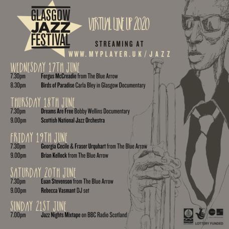 The 34th Glasgow Jazz Festival will now be held virtually from Wed 17-Sun 21 June 2020. Over the 5 nights that the festival was due to take place, we will support our homegrown Scottish jazz talent by streaming exclusive live performances and screenings.