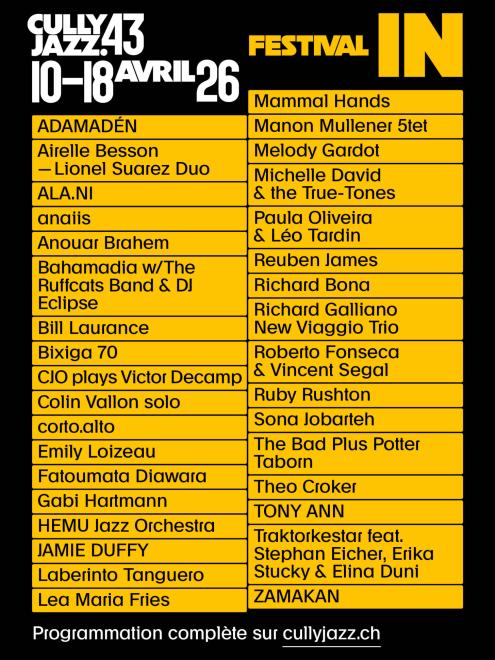 From the imposing Chapiteau stage to the vibrant Next Step venue, via the intimate Temple, the 36 concerts featured in the IN program showcase the dazzling panorama of Swiss and international jazz. Fatoumata Diawara, Tony Ann, Anouar Brahem, Theo Croker, Michelle David & the True-Tones, Ruby Rushton, Airelle Besson & Lionel Suarez, ALA.NI, as well as Roberto Fonseca & Vincent Segal are among the artists appearing on the bill of the Festival’s 43rd edition.