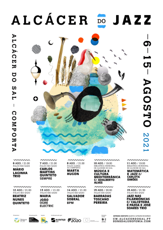 The Alcácer do Jazz program includes concerts by Mário Laginha, Carlos Martins, Marta Hugon, Beatriz Nunes, Maria João, Salvador Sobral and the Barradas-Toscano-Pereira trio. The festival will be closed with “Jazz at the Marching Bands”, the final presentation of a artistic residency program with two local marching bands from Alcácel do Sal, aiming at accompanying girls and boys who are engaged in local brass and marching bands to the world of jazz and improvisation. This our Jazz for Young People Program. Apart from the main concerts, Alcácer do Jazz promotes moments of meeting with the community and of debate that focus on the topics of “Mediterranean Music and Cultures”, and “ The Jazz of Mathematics ”.