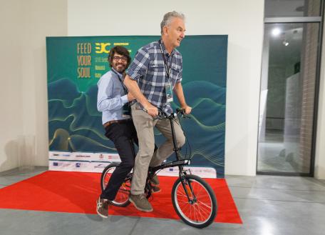 NovaraJazz launched the train challenge last year for the 2019 European Jazz Conference as part of the Europe Jazz Network’s initiative “Take the Green Train”. The participant who travelled the furthest by train would win a customised folded bike. NovaraJazz Artistic Director Corrado Beldi presented Nigel with the prize and says, "Congratulations Nigel and we hope you return soon to Novara and by bike!" Other contestants in the competition travelled by train from Hamburg, Ghent and Paris.