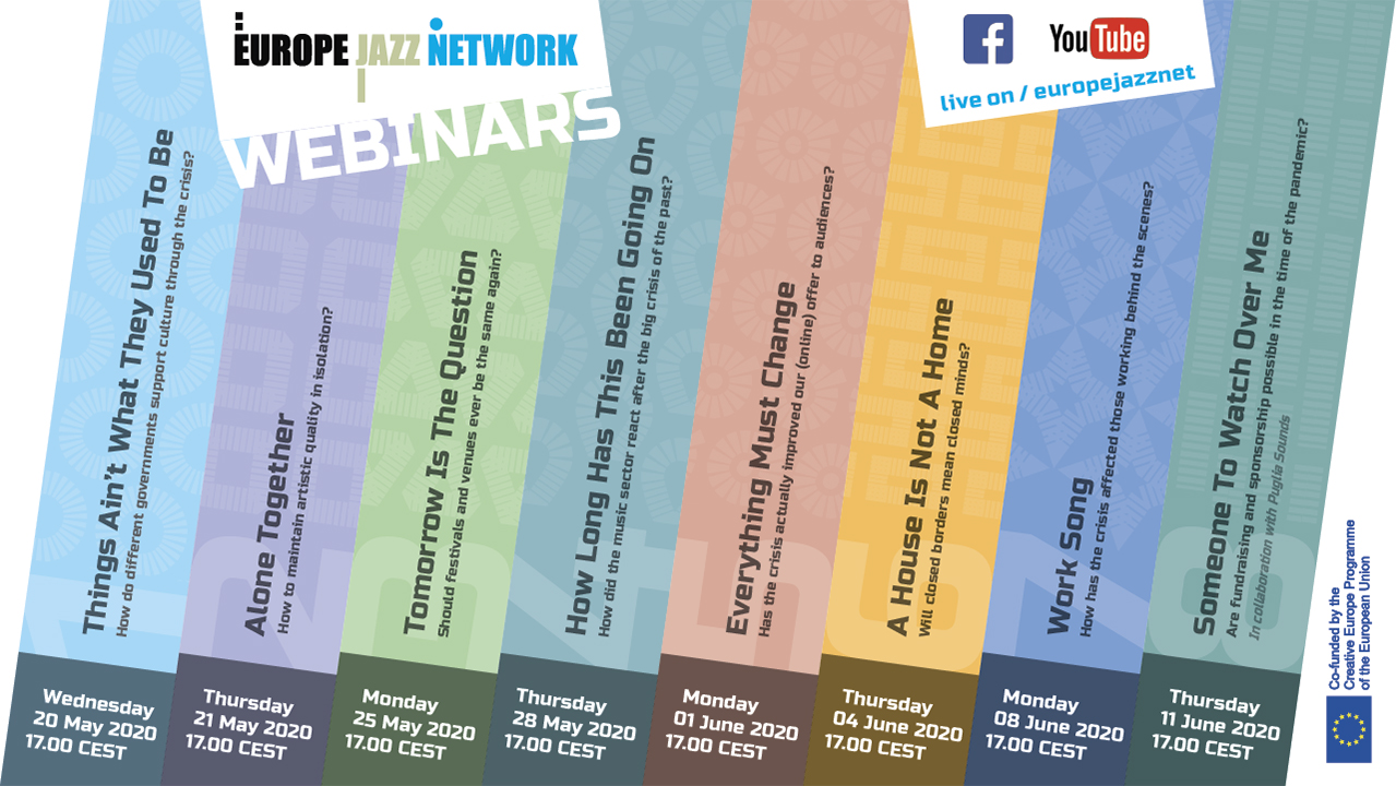 We are very happy today to announce a series of public online webinars that EJN will run over the coming month that deal with various aspects of the covid-19 crisis and its short and long-term effects on the creative music sector and all its stakeholders.